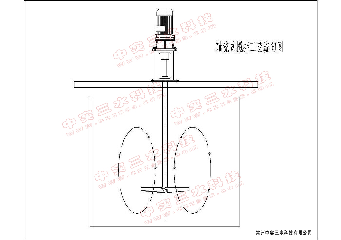在孫先生的攪拌工藝需求中,需要的是能上、下流動的攪拌工藝,使生物流體充分攪拌混合,其實對于中低粘度的液體攪拌而言,軸流攪拌的推進式攪拌機是最科學、最適合的攪拌形式(如圖),還非常節(jié)能,另外,我們運用計算軟件計算攪拌流量和功率配置,結合我們的行業(yè)經(jīng)驗,配置的技術參數(shù)也能實現(xiàn)恰到好處的工藝效果。而框式攪拌器帶動物料做的是環(huán)向流動,上下流動效果很弱。