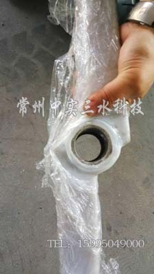 在材質(zhì)的選擇方面,針對氯離子的因素,因為不銹鋼不適于耐受氯離子,我們采用碳鋼襯塑的設(shè)計,同時因為攪拌罐的入口小于平板槳的外徑,我們在結(jié)構(gòu)設(shè)計方面將平板槳與攪拌軸采用螺紋連接的裝配式方案,連接處必須是純金屬外露的結(jié)構(gòu),此處我們就巧妙地使用了雙相不銹鋼(下圖)。